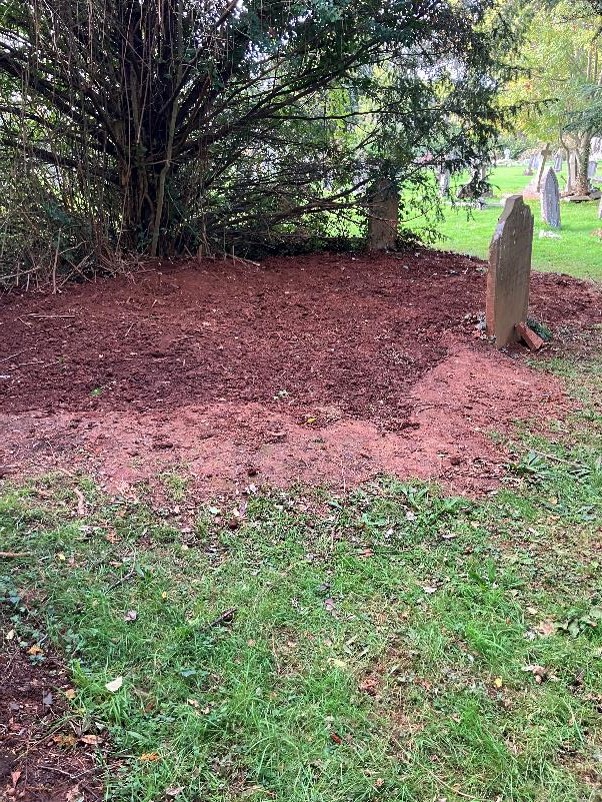 The Community Payback team that have been working in the open churchyard have completed the task of removing one of the the spoil heaps that was detracting from the general appearance in the area currently being used for new graves. They will continue to work for us doing general tidying work in the open churchyard as well as around the church. The small Gardening Group will continue to work as necessary supporting these tasks.